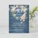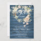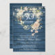 Con hermosas luces de cuerda y una delicada guirnalda floral de acuarela sobre un fondo de madera rústica azul, esta elegante invitación botánica para el 50 aniversario de bodas se puede personalizar con la información de su aniversario especial. El reverso presenta una guirnalda floral a juego que enmarca las fechas de su aniversario en tipografía elegante. Diseñado por Thisisnotme©