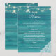 Madera azul, encaje, luces de cuerda menú de recepción de boda. Celebre su boda en su recepción con estilo y ternura con este menú de madera falsa. Personalice con sus opciones de plato principal.