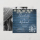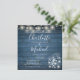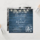 Con hermosas luces de cuerda, tarros de mason y nombres elegantes en un fondo de madera rústica azul, junto con la foto que elijas en el reverso, esta elegante invitación de boda se puede personalizar con los detalles de tu celebración de boda. Diseñado por Thisisnotme©
