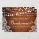 Luces de Cuerda de Madera para Boda Rústica Tarjeta de Dama de Honor de Encaje ¿Serás Mi Dama de Honor
