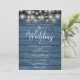Cuenta con bonitas luces de cuerda, delicados copos de nieve cayendo sobre un fondo de madera rústica azul, con sus nombres personalizados, fecha especial y detalles del evento de celebración de la boda en tipografía elegante. Diseñado por Thisisnotme©