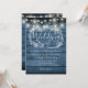 Invitación Luces de Cuerda de Madera Rústica Azul Todo en Uno