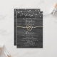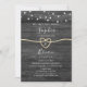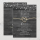 Invitación simple, elegante, moderna, de granero, solo para recepción de boda con luces de cuerda y madera rústica con corazón de cuerda de oro falso y monograma detrás.