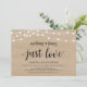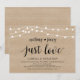Hermoso Nada Elegante, Solo Amor, Tarjeta de invitación para anuncio de boda / fiesta de elopamiento, con diseño rústico moderno, Luces de Cuerda de Granja, tema de madera de granja marrón. Esto es perfecto para la recepción de su boda y la fiesta de celebración después de la boda. Agregue sus detalles en la fuente / letra coincidente.