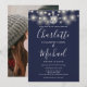 Invitación Luces de Cuerda Náuticas Azul Marino Foto Boda
