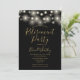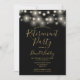 Con luces de cuerda, esta elegante invitación de celebración de jubilación negra y dorada puede ser personalizada con la información de su evento especial. Diseñada por Thisisnotme©