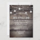 Invitaciones rústicas de renovación de votos de aniversario con madera de granero - Fondo de tablones de madera de granero desgastados y con aspecto envejecido. La parte superior está adornada con faroles de frasco de mason vintage y luces de cadena románticas para exteriores. Dice 'We Still Do' en letra de estilo western con 'Vow Renewal' debajo y el año de aniversario arriba en letra curva. Los detalles de la fiesta de aniversario, incluyendo la información de RSVP, están debajo. La parte trasera tiene un fondo con aspecto de madera a juego. Nota: Todas las imágenes se imprimen. Utilice el botón Personalizar para cambiar cualquier cosa: estilos de letra, tamaños, colores o ubicación. Invitaciones elegantes de campo para verano u otoño, fiesta de aniversario rústica al aire libre, tema de boda de granero y estilos de aniversario de boda western o vintage. Tenemos más invitaciones