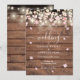 Con hermosas luces de cuerda, delicadas flores caen sobre los detalles de tu día especial de boda en tipografía blanca elegante sobre un fondo de madera rústica. Diseñado por Thisisnotme©