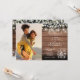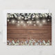 Una invitación de boda elegante que presenta su foto especial y hermosas hojas de salvia y lila, luces de cuerda, tarros de mason y los detalles de su boda en texto elegante sobre un fondo de madera rústica. Diseñado por Thisisnotme©