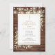 Con luces de cuerda bonitas y delicadas hojas de vegetación de acuarela sobre un fondo de madera rústica, y un elegante crucifijo dorado, esta invitación chic para el primer comunión puede ser personalizada con su información especial. Diseñada por Thisisnotme©