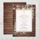 Con hermosas luces de cuerda y delicadas hojas de vegetación en acuarela sobre un fondo de madera rústica, y un elegante crucifijo dorado, esta elegante invitación para la primera comunión puede ser personalizada con tu información especial. Diseñada por Thisisnotme©
