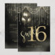 Invitación Luces de cuerdas y globos Sweet 16 Black/Gold ID47