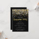 Hermosas luces de cuerdas brillantes y invitación a la fiesta de compromiso de confeti dorado. Esta elegante invitación a la fiesta de compromiso en negro y oro se personaliza fácilmente para tu evento, simplemente añadiendo tus detalles en el estilo de letra, color y texto de tu elección.