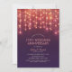 Invitaciones de Aniversario de Bodas 25 Luces de Fiesta Modernas. Personalizadas con los detalles de su celebración. Puede cambiarlo a aniversarios 10, 20, 50, 75, etc. Cuenta con luces creativas y tipografía en un fondo estrellado azul púrpura. Divertidas invitaciones de aniversario de bodas para su celebración. Esta invitación de aniversario de bodas está diseñada por superdazzle.com