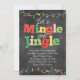 Esta divertida y festiva invitación a la fiesta Mingle & Jingle es perfecta para tus Navidades. Este diseño cuenta con un fondo de pizarra y cadenas de luz de Navidades festivos.