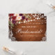 Luces de cadena de madera de boda rústica encaje acuarela borgoña marsala floral ¿Serás mi dama de honor Tarjeta