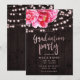 Invitación Luces de madera rústica rosa floral para fiesta de