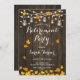 Invitación del partido de retiro rústico con patrones de madera marrón oscura y luces de hadas de cuerda. Presenta Jares de Mason y hojas de otoño. Ideal para un fiesta de estilo rústico. Invitaciones Zazzle impresas o plantilla digital de descarga instantánea.