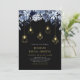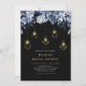 Invite a su invitado a su día especial de celebración con esta hermosa invitación a la ducha de novia. Este sofisticado diseño cuenta con hermosas flores de tonos azules y luces de cuerda doradas con luces geométricas. Se puede personalizar el texto y el color de fondo. Ideal para una moderna ducha nupcial de invierno o una ducha de boda.