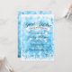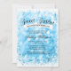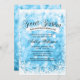 Glamorosas invitaciones de invierno maravilloso tierra dulce 16 invitaciones. El moderno fondo azul bokeh, el borde blanco de copos de nieve y la fuente de escritura inspiran un tema de invierno.