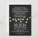 Invitación de boda rústica en pizarra negra con románticas luces de cuerdas. Por favor, contáctame si necesitas más productos a juego. Utilice la tarjeta RSVP: http://www.zazzle.com/chalkboard_lights_wedding_rsvp_cards-161686802609801905 Vea otros bodas de luces de cadena