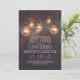 Romántica invitación de boda vintage con luces brillantes. Hermosa invitación rústica para tu boda de ensueño con bombillas de luz como telón de fondo o con las lámparas de las cadenas colgantes - bombillas encima de tu mesa boda.
