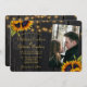 Elegante moda verano o otoño, elegante plantilla de invitación sobre madera de grano marrón oscuro con hermosos ramos de girasoles, cuerdas o luces de trineo y un guión de caligrafía de oro de imitación de moda. +++++++++++++ Fácil de personalizar con tus detalles y fotos! ++++++++++ La invitación es apta para bodas de granero rústicos de verano o otoño elegantes.