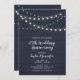 Celebre su día especial con esta invitación de aniversario de boda de madera rústica. Este diseño presenta una tipografía de letra cursiva elegante y luces de cuerda sobre un fondo de madera rústica de tono azul. Puede personalizarlo para cualquier ocasión como una fiesta de cumpleaños, fiesta de jubilación o fiestas corporativas.