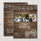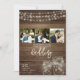 Establece el tono para la celebración de tu país con estos artículos de papelería de boda rústicos que presentan un cálido fondo de madera, luces de cadena brillantes y encantantes frascos de mason. Perfecto para bodas en graneros, celebraciones al aire libre o ceremonias nocturnas acogedoras, este diseño rústico crea una atmósfera acogedora y romántica. Personaliza con tus nombres, detalles de la boda e información del evento para crear la invitación / papelería perfecta que refleje tu estilo rústico.