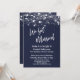 Sobre un fondo azul marino que se puede cambiar al color que prefieras, he colocado una textura de papel rústico transparente y sutil que añade profundidad e interés al papel. En una fuente de escritura a mano moderna y casual, he creado un gráfico para la palabra "Nos Casamos". En la misma fuente distintiva, la palabra "Amor" aparece en la parte posterior. Todo el texto restante es totalmente editable; por favor, siéntete libre de usar los campos de la plantilla para agregar tus datos y hacer clic para personalizar aún más si necesitas cambiar el tamaño, reposicionar o incluso cambiar esta fuente. La parte superior del diseño está acentuada con varios gráficos diferentes que representan una variedad de estilos de luces brillantes y centelleantes, lo que añade un ambiente divertido y festivo para tu ocasión especial. Por favor, asegúrate de hacérmelo saber si tienes solicitudes especiales o necesitas ayuda con la personalización. // 105 //