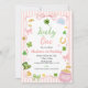 Features soft pastel pink watercolor, delicate gold accents, and charming four-leaf shamrocks — perfect for a sweet and stylish Irish-inspired first birthday celebration.