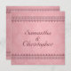 Una invitación de estilo vintage para sus futuros nupciales con un adorno de encaje estilo art deco burdeos sobre un fondo rosa con un sutil patrón de damasco. El texto es totalmente personalizable para su propia ocasión especial. Este elegante diseño se coordina con el Vintage Bordeaux Deco Lace de la colección Boda Rosa. Si necesita ayuda con la personalización para su día especial o le gustaría esto en una combinación de colores diferente o en productos que no se ofrecen actualmente con este diseño, por favor contáctenos a través de nuestra tienda WeddingBazaar.