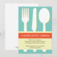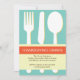Díganle a sus amigos que su lugar es donde estarán estas celebraciones de acción de gracias. Estos modernos tanques de acción de gracias invitan a ver un conjunto de utensilios de comida (tenedor, cuchillo, cuchara) bajo un cartel de una cinta naranja. La información de su fiesta se coloca sobre un mantel de polka punto ligero y lúdico. Haga de su fiesta de agradecimiento un éxito con estas deliciosas invitaciones a fiestas.
