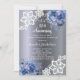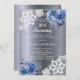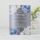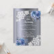 Para un elegante y romántico 25º aniversario de boda, la boda de plata. Un fondo oscuro de imitación plateada decorado con flores azules, rosas y encaje blanco. Personalice y agregue sus nombres y detalles.