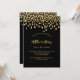 Moderna, elegante e invitada. Un fondo negro decorado con un falso confeti dorado. Personalice y agregue un nombre y detalles.