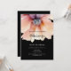 Una invitación moderna, elegante y glamurosa para una fiesta de cumpleaños número 50 (o cualquier edad). Fondo de color negro, decorado con una gran melocotón y una flor morada acuática. El nombre se escribe con una secuencia de comandos de estilo con letras a mano en modo. Personalice y agregue los detalles de su fiesta.