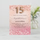 Una invitación moderna, elegante y glamurosa para un chica de Quinceañera, 15 años de fiesta. Un fondo dorado subió y degradado rosa rubor, confetti. El nombre está escrito con un guión moderno de estilo con letras de color rosa oscuro y dorado. Personalice y agregue los detalles de su fiesta. El número 15 se escribe con un tipo de letra, guión.