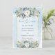 Invitación Lujo Dusty Blue White Gold Peonies Ahorra La Fecha