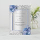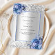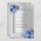Faux silver looking background decorated with blue roses, flowers and confetti. Personalize and add your names and wedding details. Black letters.