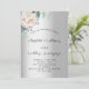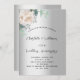 Un fondo falso plateado. Decorada con flores blancas, flores de peonía y vegetación de eucaliptos de color verde acuático. Personalice y agregue sus nombres y detalles