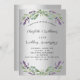 Un fondo falso plateado. Decorado con flores de lavanda y vegetación eucaliptica. Personalice y agregue sus nombres y detalles
