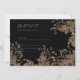 Esta elegante y moderna invitación a Wedding RSVP es el diseño perfecto para complementar un evento elegante y sofisticado. Presenta un elegante y sencillo encaje floral negro y dorado con una tipografía moderna de oro sobre un fondo negro. Este diseño contemporáneo, único y elegante impresionará a todos sus huéspedes. Todos los diseños están impresos.