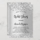 Una moderna y elegante ducha de novia. Fondo de color plateado falso decorado con confeti. Personalice y agregue un nombre y detalles del fiesta.