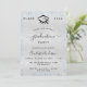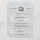 Una moderna, elegante y minimalista invitación a la fiesta de graduación. Fondo de aspecto metálico falso plateado decorado con polvo purpurina falso azul claro. Personalice y agregue un nombre, año y detalles. Letras de color negro.