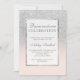 Una invitación moderna, bonita y elegante para fiesta de cumpleaños Quinceañera con brillo plateado falso y efecto ombre con bloque de color rosa pálido y marco plateado elegante. Perfecta para una princesa en sus quince años.