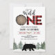 Lumberjack Red Buffalo Plaid Bear Invitation 1st Birthday Cute lumberjack temática primera invitación de cumpleaños para un niño bebé con una silueta de oso negro, trozo de madera, hachas, pinar y moderno título de caligrafía. Esta salvaje invitación al primer cumpleaños con tema de leñador es ideal para un cumpleaños de invierno.