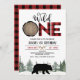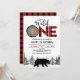 Invitación Lumberjack Red Buffalo Plaid Bear Primer Cumpleaño