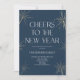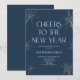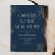 ¡Esta es una elegante invitación de fiesta de Año Nuevo con luminosos azules marinos!