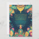 La fachada de la invitación presenta un rico fondo oscuro que contrasta con el amarillo y el turquesa, creando un ambiente llamativo y festivo. En la parte inferior, una única lámpara Diya ornamentalmente detallada brilla con fuerza, sirviendo como punto central del diseño. El amarillo intenso y el turquesa se completan con delicados elementos rosas que le dan un toque de elegancia y alegría. Los motivos ornamentales hindúes se tejen a través del diseño, realzando el encanto tradicional y añadiendo profundidad. Los detalles del evento se muestran en un guión sofisticado que se armoniza con los colores ricos. La parte trasera de la tarjeta continúa con el tema oscuro, proporcionando espacio para el texto del personalizable y los deseos de Diwali, enmarcados por los mismos tonos vibrantes y patrones intrincados. Este diseño ofrece una combinación perfecta de tradición y celebración vibrante