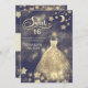 Invitación Luna celeste y estrellas caligrafía dulce dieciséi